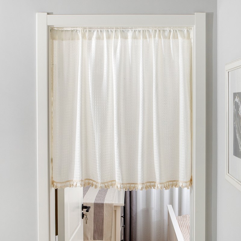 奶油风日系免打孔防蚊门帘透光不透人短帘半帘卧室书房厨房隔断帘