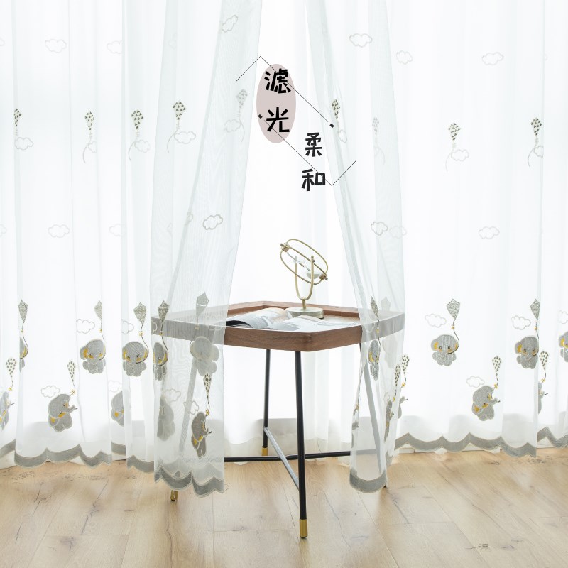 免打孔安装遮光挂钩式卡通小飞象儿童房卧室窗帘男女孩卧室公主风