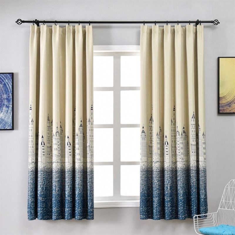 卧室成品窗帘挂钩式复古客厅印花全遮光布飘窗男女孩儿童房儿童房