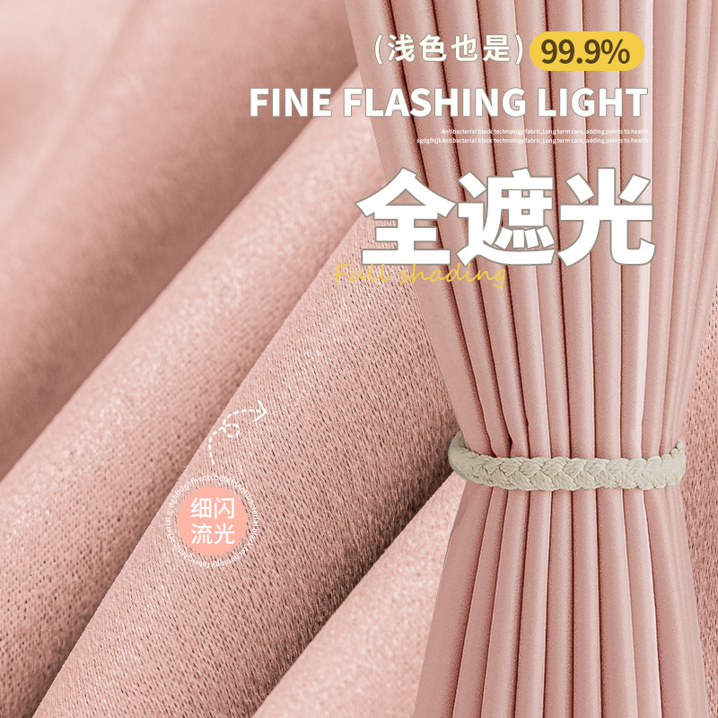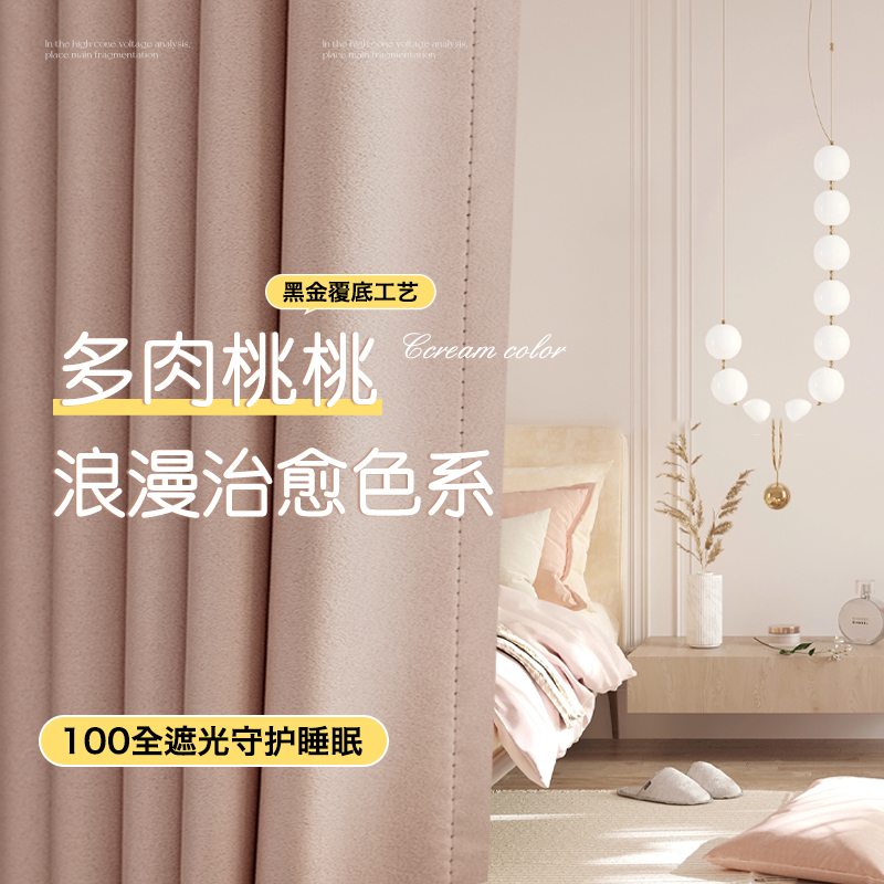 芝士电雕蜜桃粉全遮光窗帘卧室公主风男孩女孩儿童房彷羊绒挂钩款