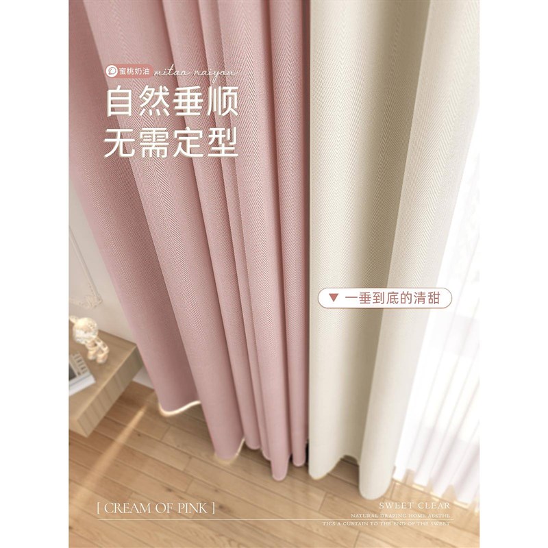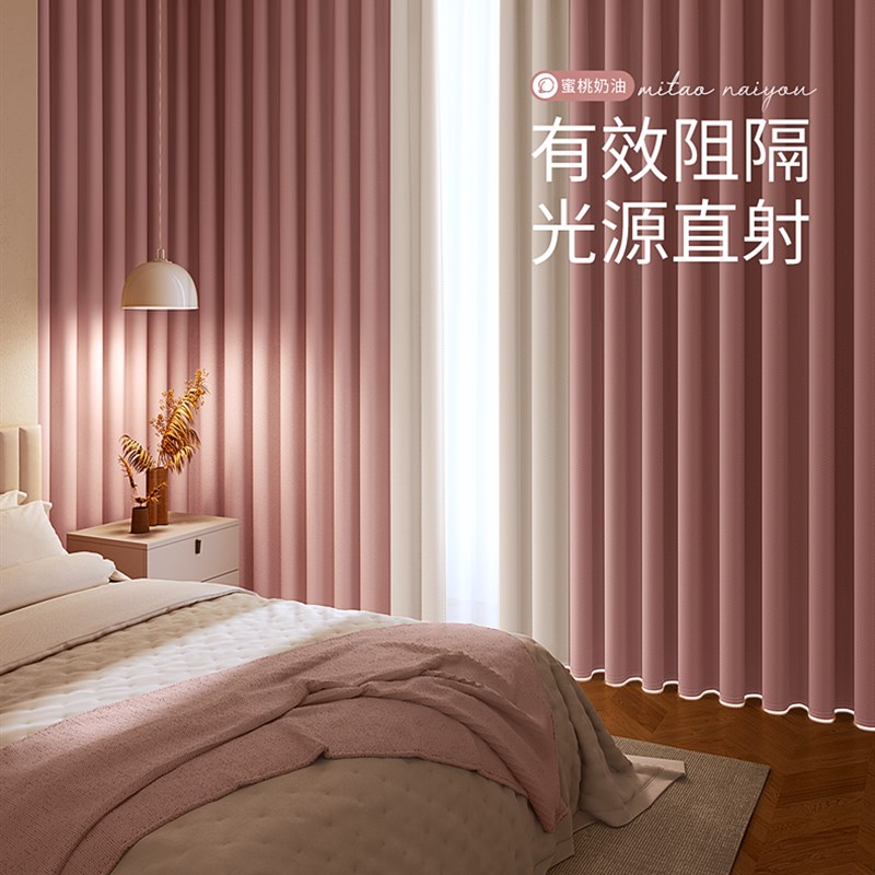 芝士电雕蜜桃粉全遮光窗帘卧室公主风男孩女孩儿童房仿羊绒挂钩款