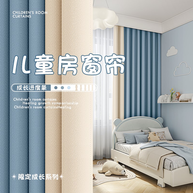 卧室儿童房窗帘隔音全遮光高级感男孩E女孩房间飘窗挂钩式2025新