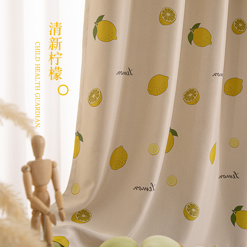 秋叶黄插画新款窗帘遮光儿童房女孩动漫定制卧室挂钩打孔卡通客厅