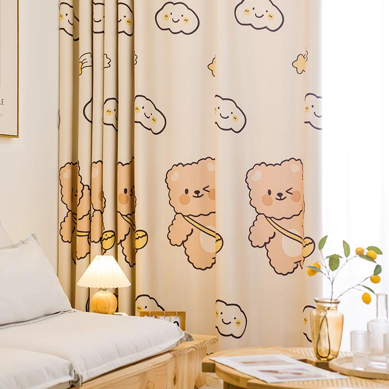 可爱卡通遮光儿童房男女孩窗帘卧室隔音遮阳可爱成品飘窗挂钩打孔