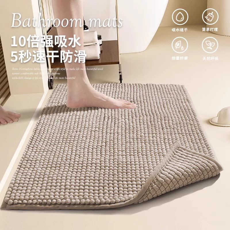 短毛毛虫雪尼尔地垫家用卧室床边吸水防滑地毯卫生间专用商用防潮