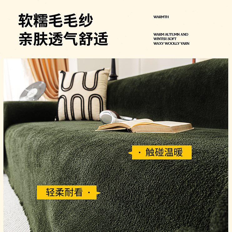 秋冬沙发巾皮沙发套罩纱毛毛绿色防尘全包墨沙发垫防水加厚新款毯