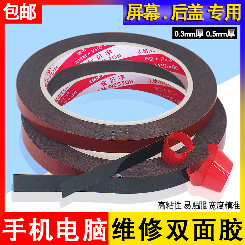 荣晋森0.3mm0.5mm厚手机防尘维修双面胶液晶屏幕边框胶平板电脑后盖强力泡棉胶超薄高粘PE红膜海绵黑色双面胶