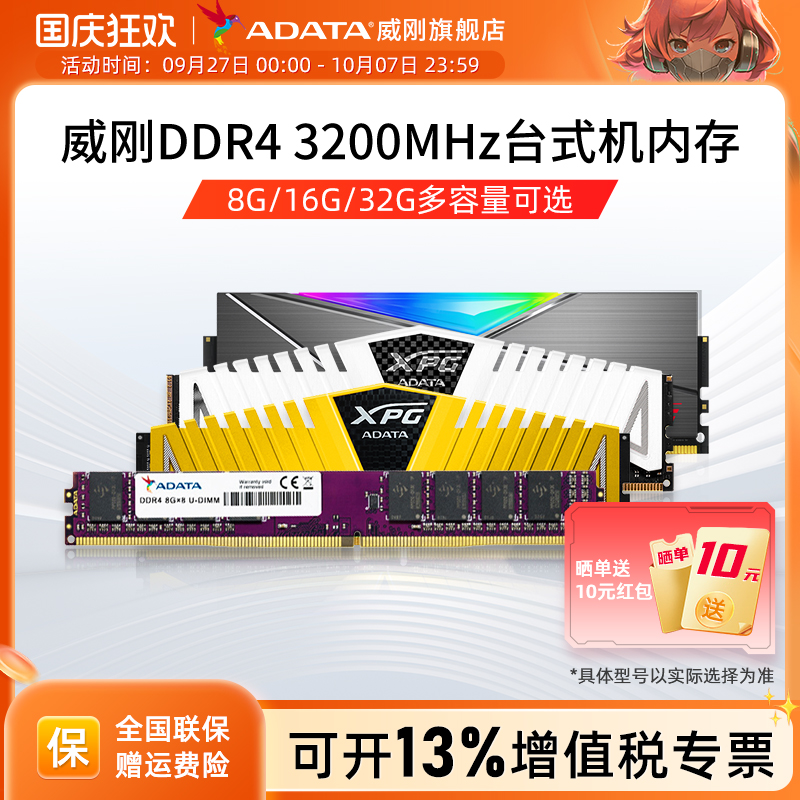 威刚DDR4 3200内存条 8G/16G/32G台式机电脑电竞马甲条灯条普条