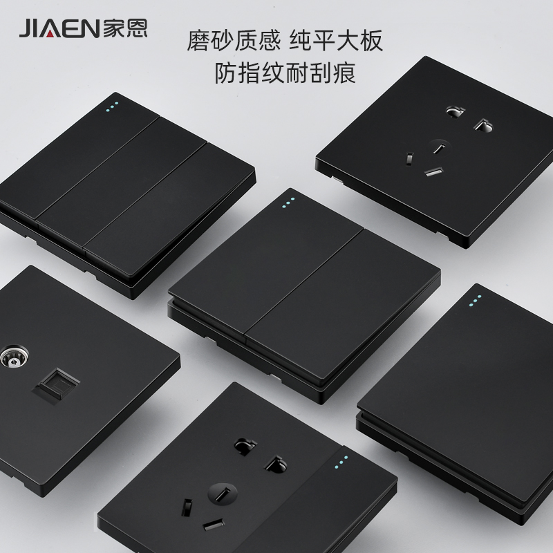 暗装86型黑色开关插座面板USB五孔带开关家用16A多孔电源全屋套装