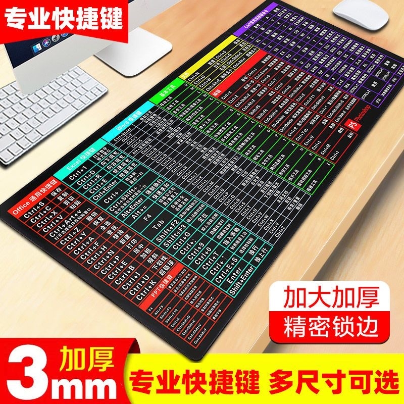 鼠标垫超大号快捷键cad软件excel函数大全wps ps pr wordug办公垫