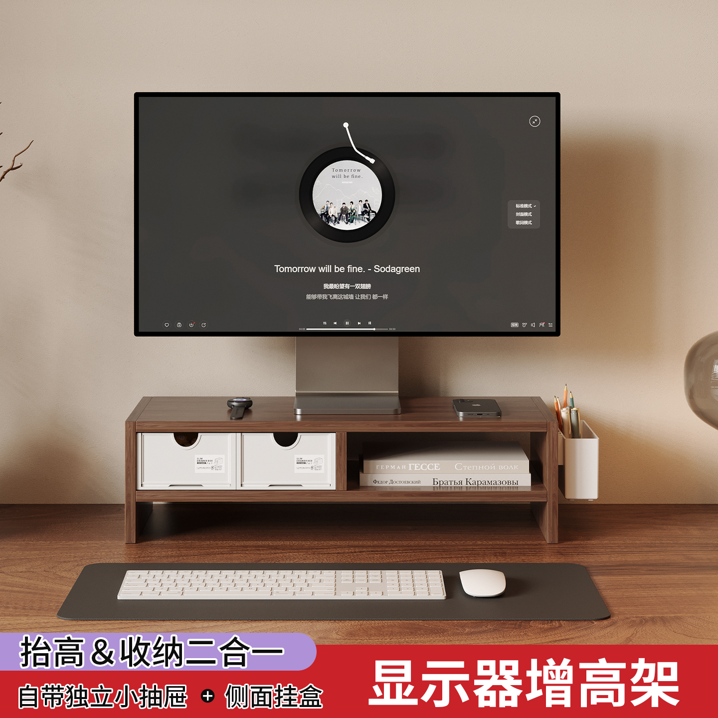 台式电脑显示器增高架带抽屉多功能支架屏幕垫架子桌面收纳台式置物架升降笔记本电脑增高底座抬高可调节