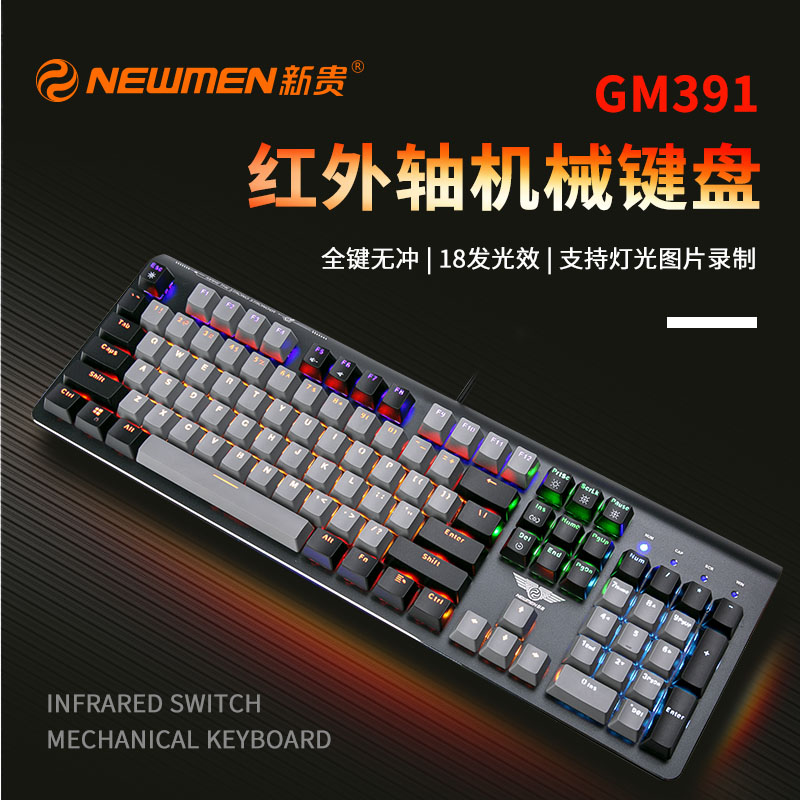 新贵GM391全防水悬浮插拔轴机械键盘红外轴104键炫光电竞游戏