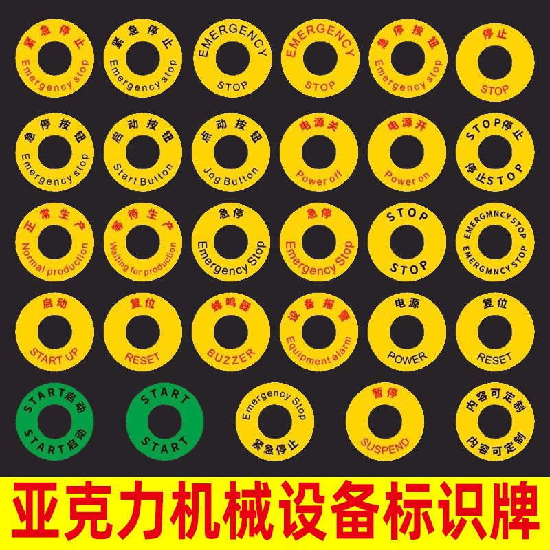 按钮标识牌指示牌亚克力标签急停启动复位停止贴纸电源开关提示牌故障设备按钮开关标牌电柜箱车间标志定制小