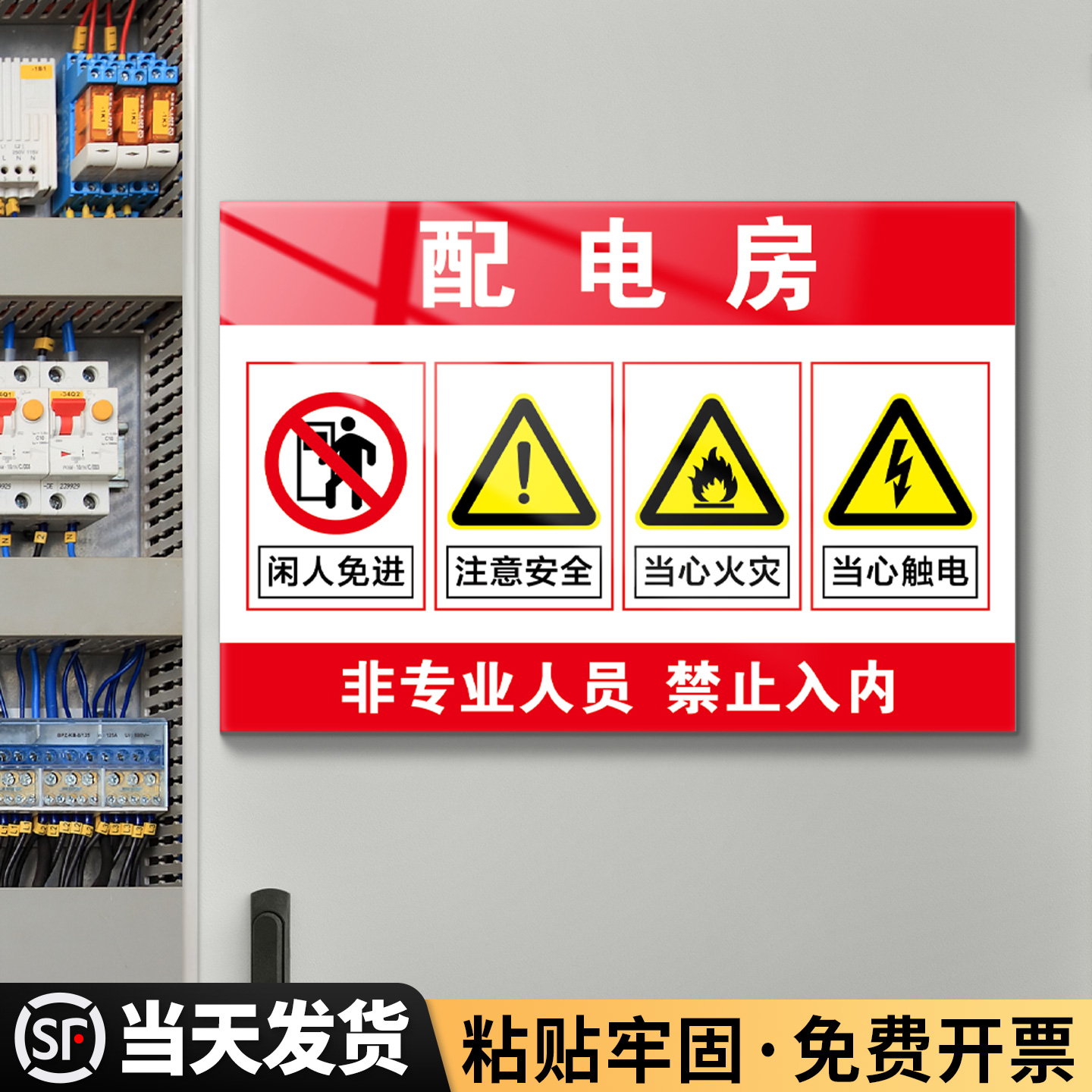 配电箱标识牌亚克力有电危险小心当心触电警示贴纸机房重地闲人免进电源柜请勿触摸高压注意安全温馨提示标志