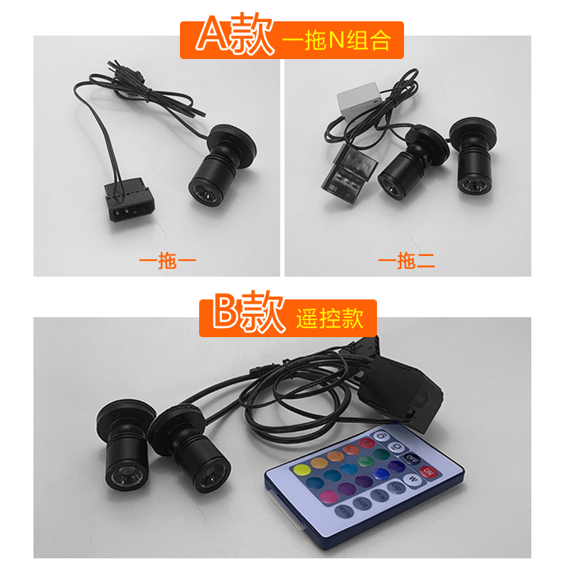 led迷你小射灯USB双头车载电脑明装灯1W手办模型机箱插座5V彩色灯