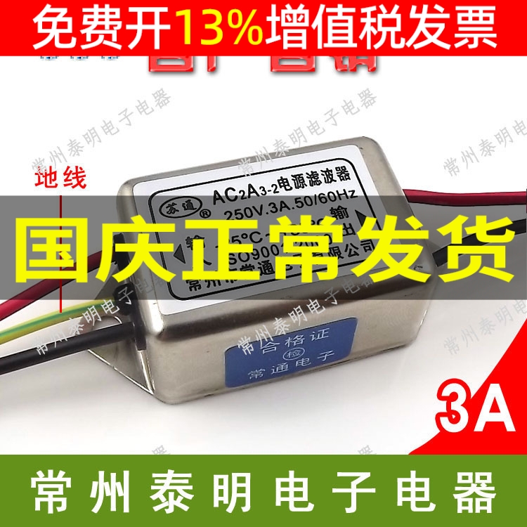 EMI单相单级电源滤波器AC2A3-2滤波器净化器带接地线220V 3A