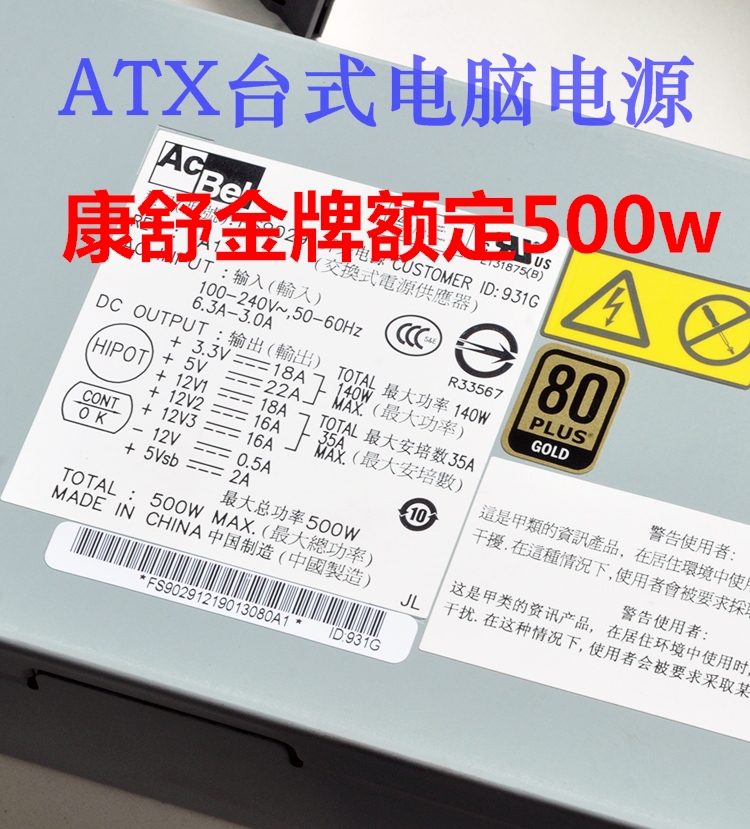 Acbel康舒额定500w金牌台式机电源ATX定制 小机箱迷你静音450