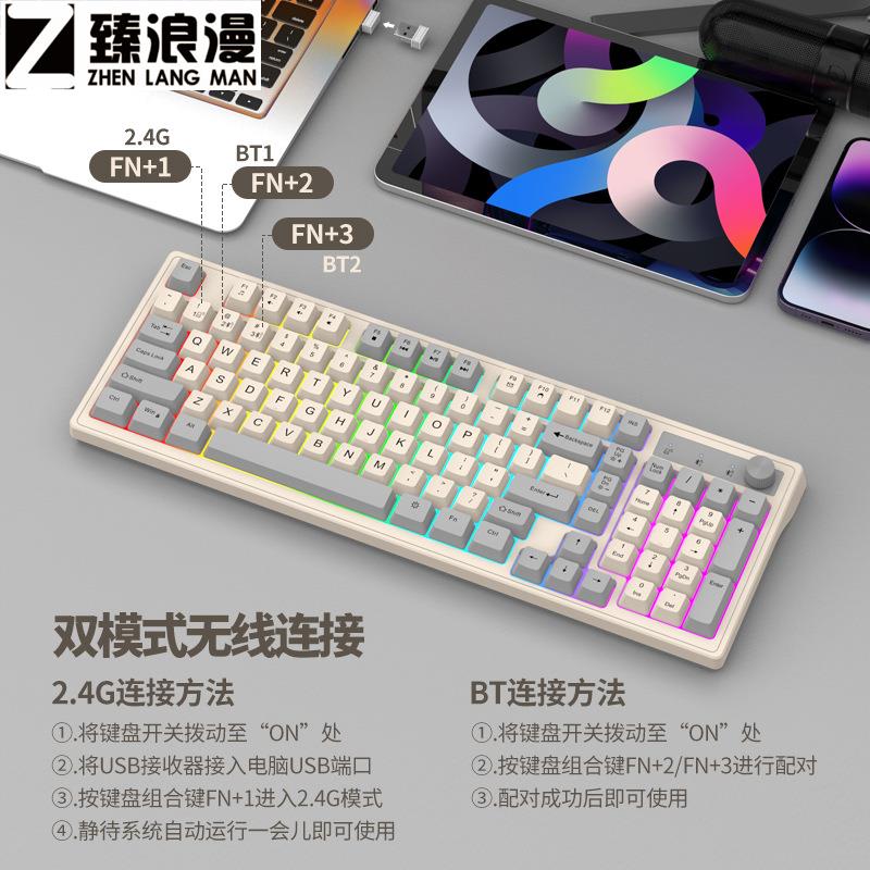 键盘台式电脑通用无线蓝牙双模机械手感键盘时尚拼色办公发光游戏