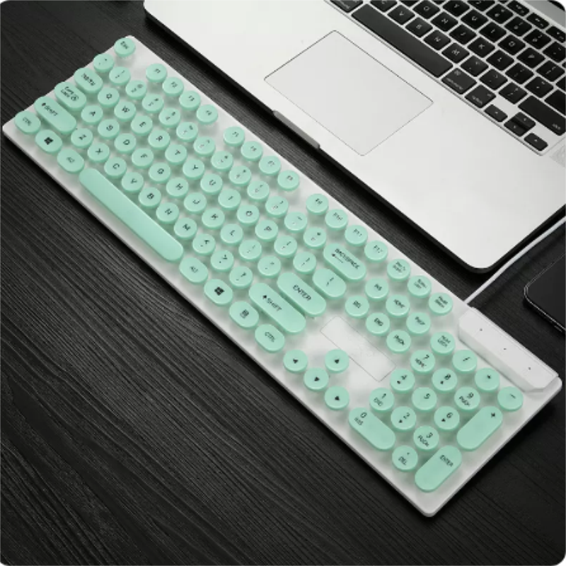 铂科蒸汽朋克有线键盘背光笔记本台式办公家用发光外接圆形按键