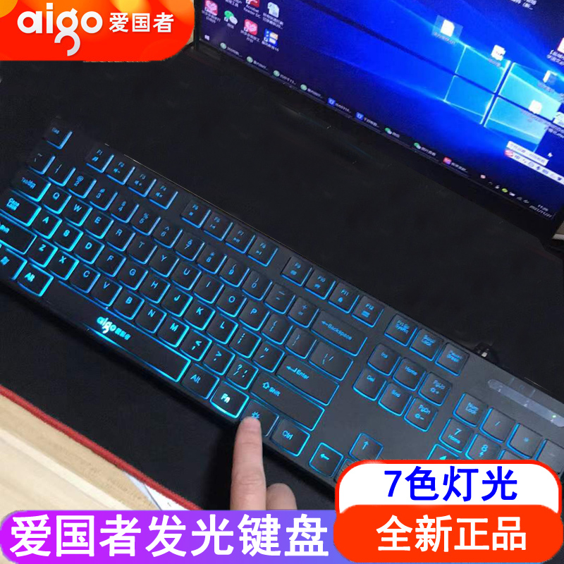 爱国者有线发光键盘 7色背光灯光笔记本台式通用USB接口办公家用