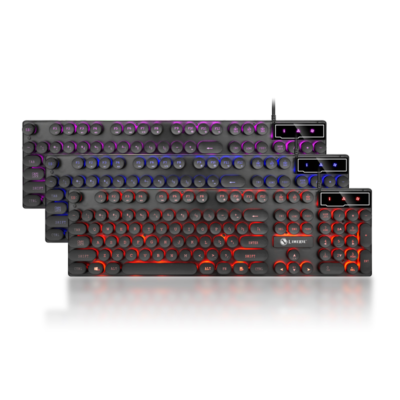 力美TX30朋克版键盘 USB有线家用电脑背光复克朋友圆键帽发光键盘