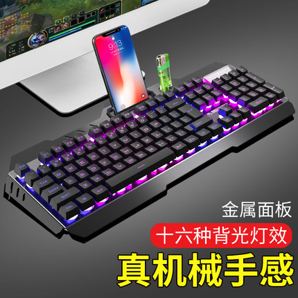 电脑有线键盘背光悬浮机械手感发光LOL游戏金属网吧家用酷USB键盘