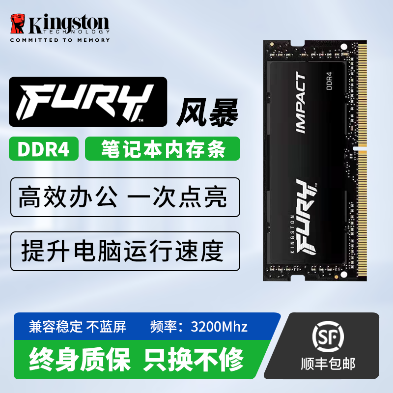 金士顿骇客神条 Fury野兽风暴DDR4 3200MHz 8g16g32g笔记本内存条