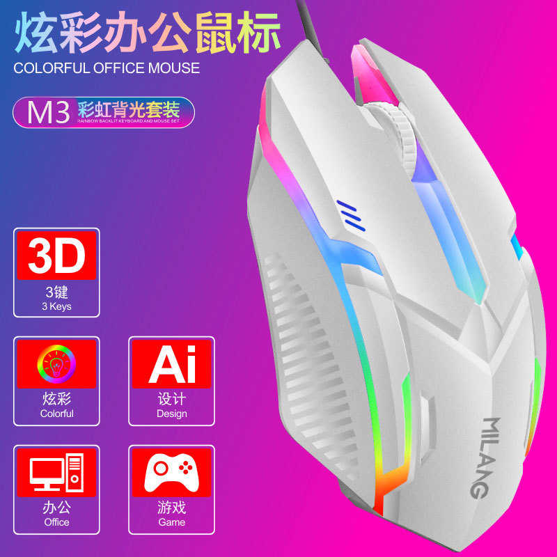 米狼M3七彩发光有线鼠标台式机笔记本办公家用游戏黑色白色鼠标