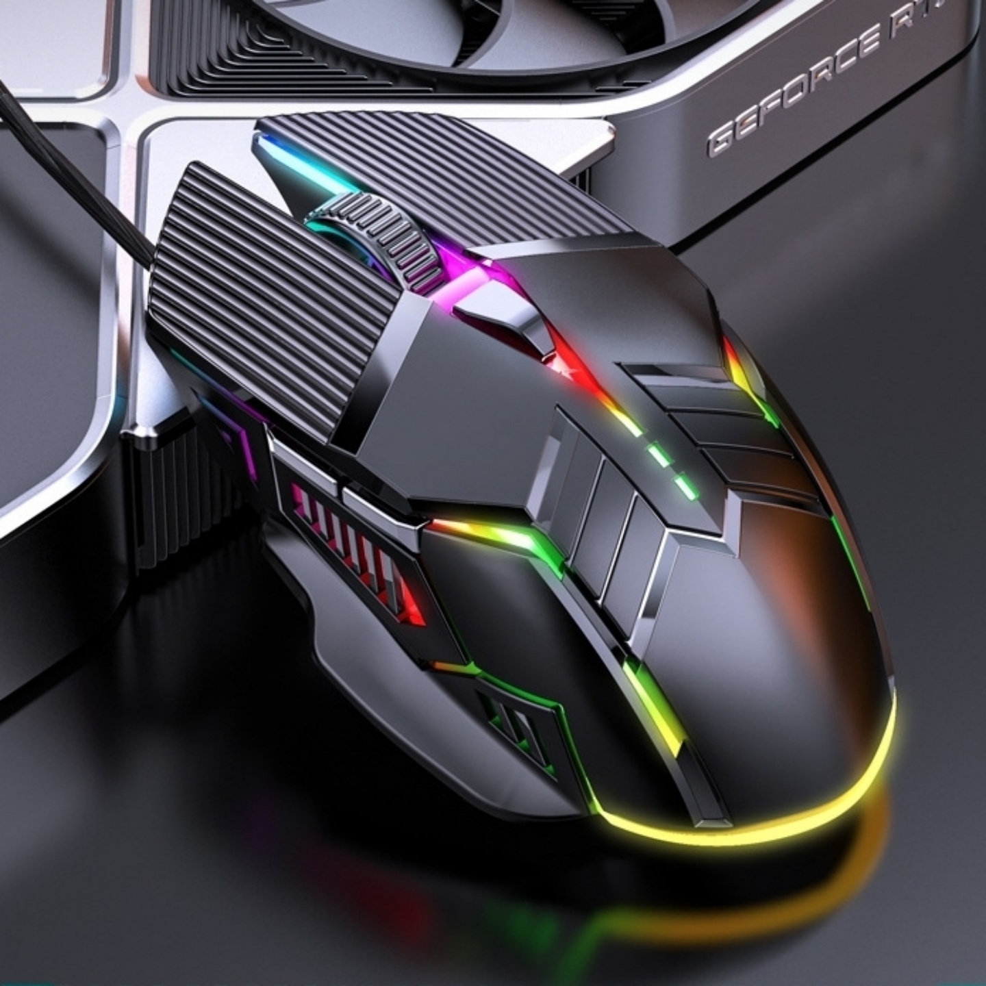 批发E528 USB1.8米有线鼠标RGB七彩发光 笔记本电脑办公游戏鼠标