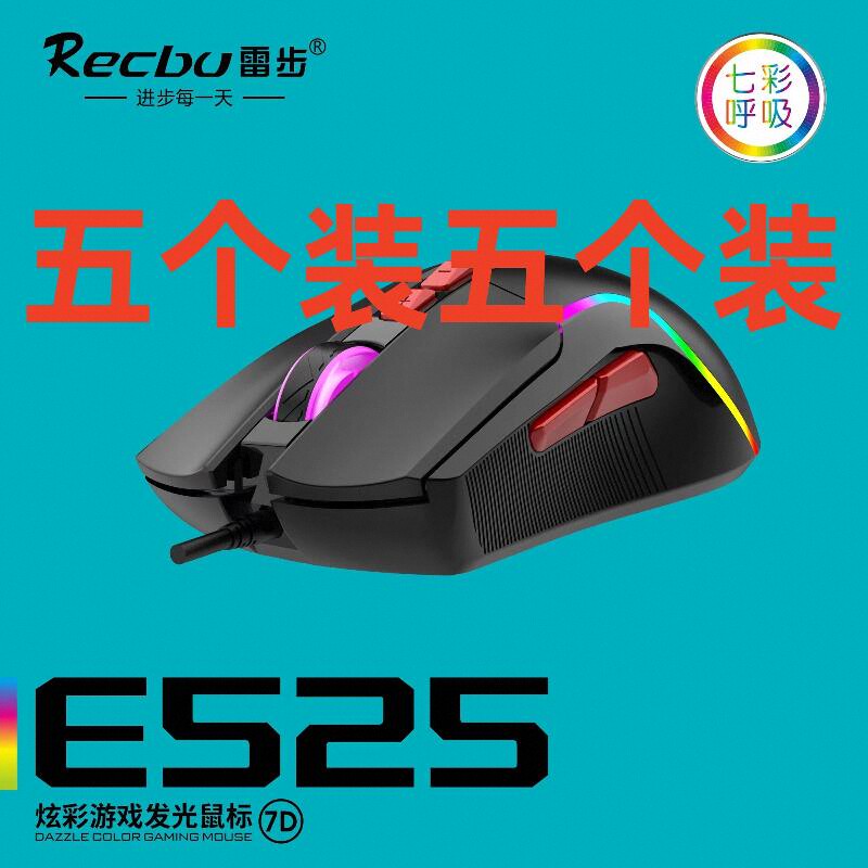 【五个装】雷步528有线USB鼠标七彩发光笔记本电脑办公游戏鼠标