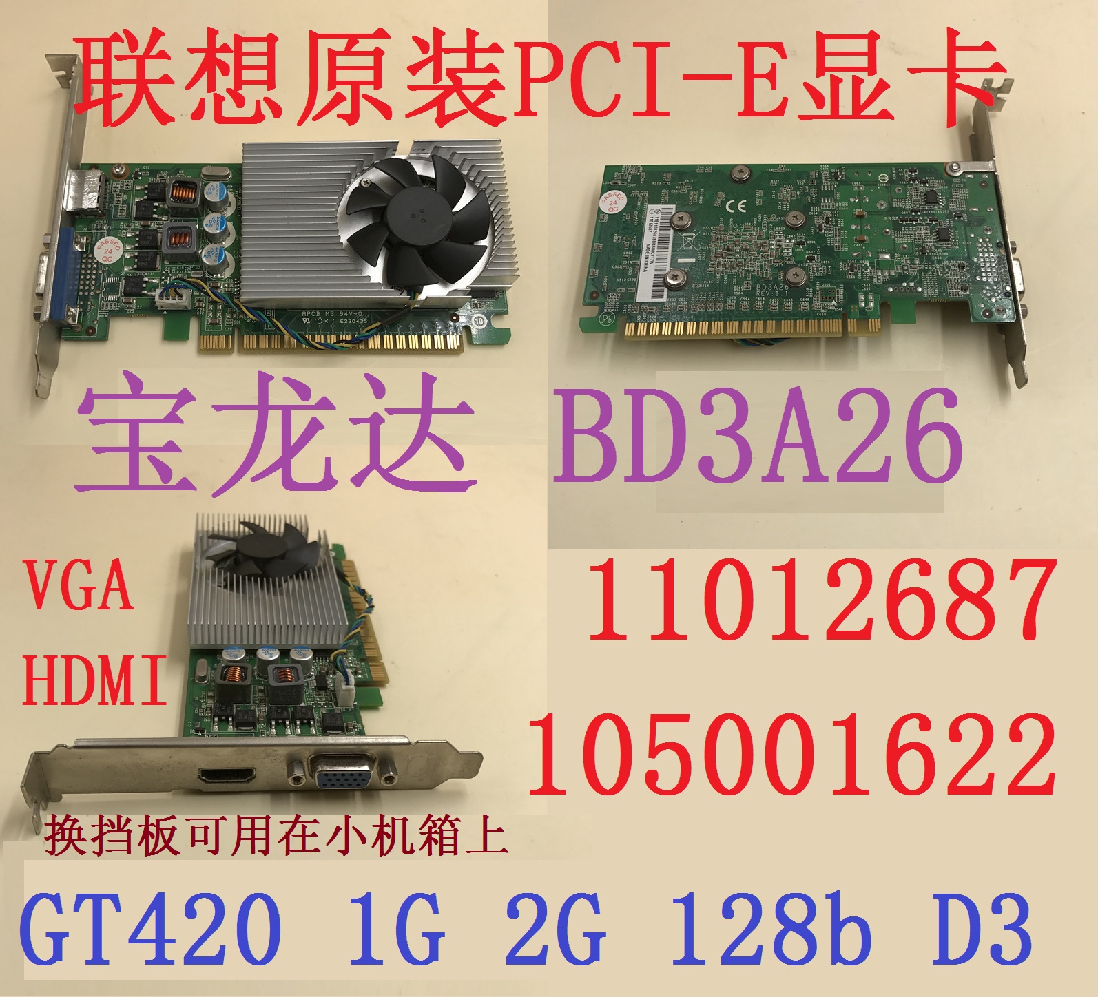 2手拆机联想PCI-E显卡BD3A26 GT420 1G 2G 128b D3 11012687 HDMI