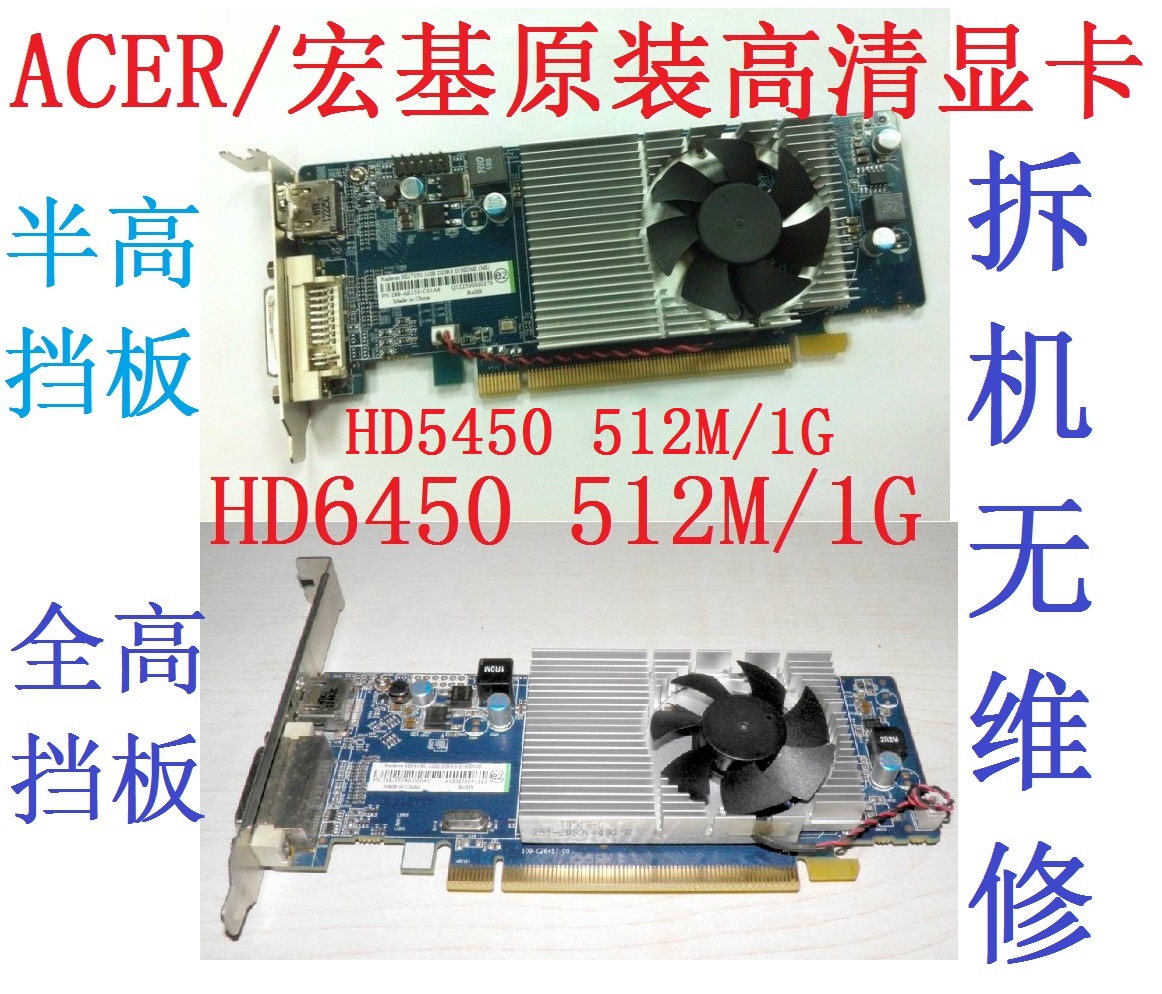 2手拆机原装HD6450 7450 7470 512M亮机8490 R5/240 1G显卡DVI DP