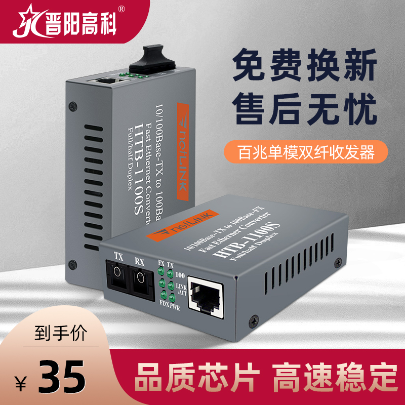 光纤收发器NetLink HTB-1100S SC口光电转换器百兆单模双纤外置电源25KM一台