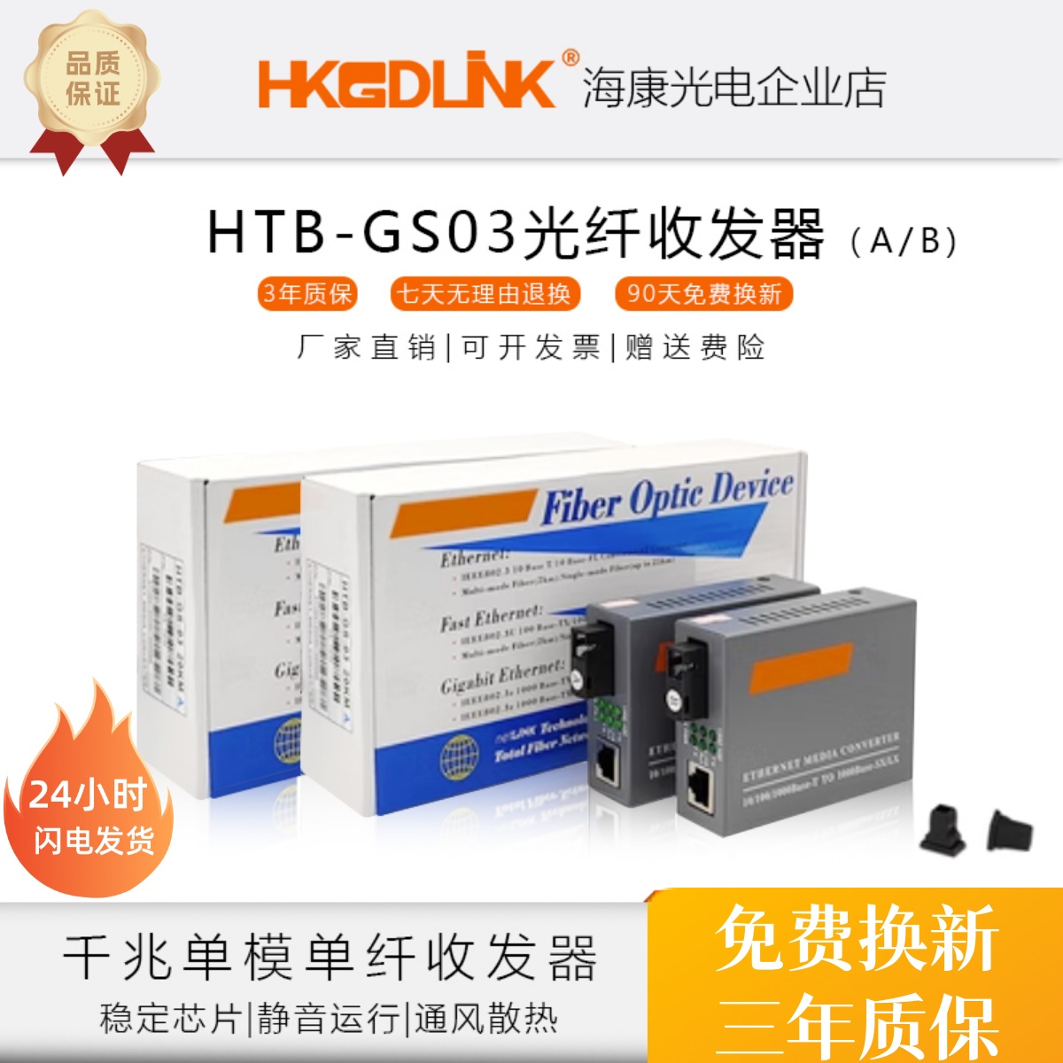 HTB-GS03A/B千兆单模单纤光纤收发器netlink光电转换器外置电源SC