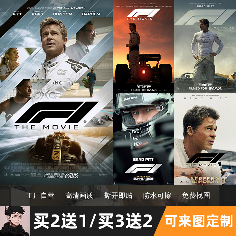 F1狂飙飞车电影海报装饰画布拉德皮特赛车宿舍卧室壁纸超大墙贴画