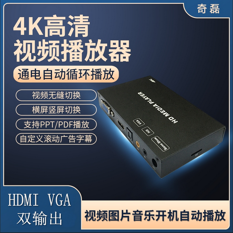 奇磊K7高清硬盘播放器通电自动循环U盘横竖屏4K广告机车载家用VGA
