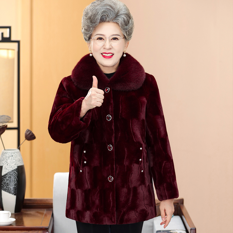中老年人秋冬装女妈妈水貂绒洋气上衣70岁奶奶装加厚保暖老人外套
