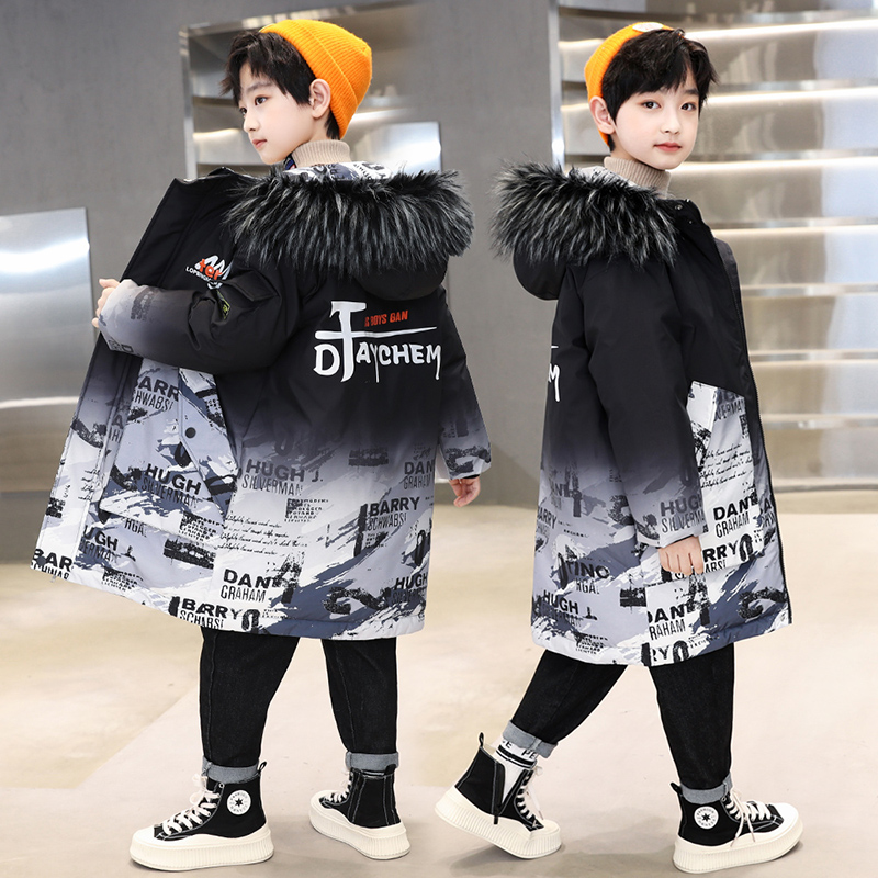 儿童羽绒棉服男童中长款25新款洋气中大童加厚三防男孩子冬季外套