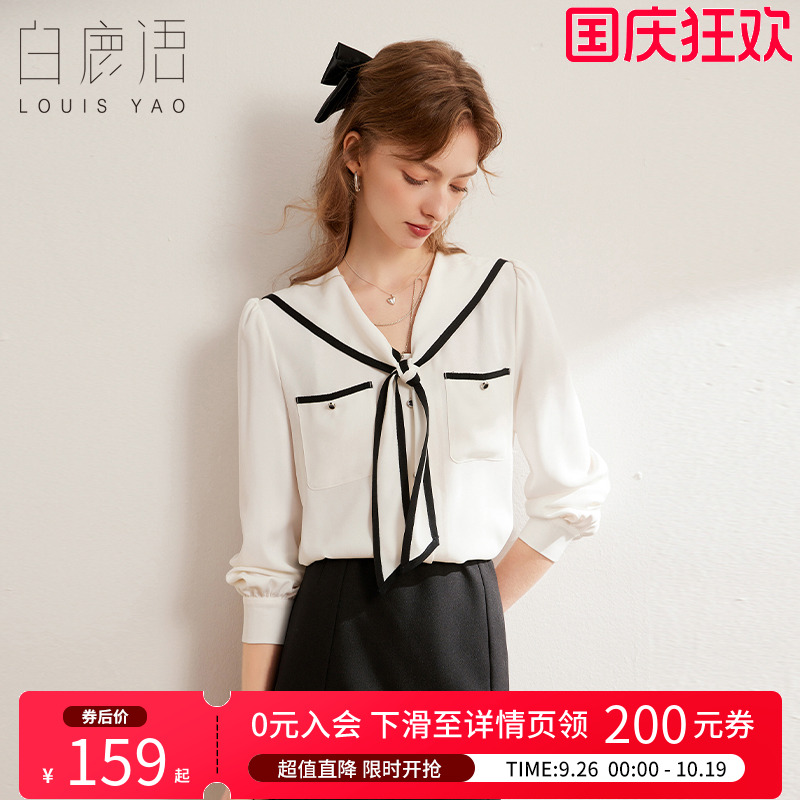 白鹿语法式飘带海军领衬衫2025春季新款减龄学院风别致长袖衬衣女