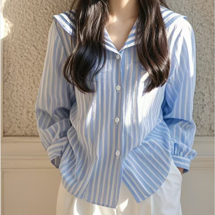 2025春夏新款学院风日系减龄海军风大翻领长袖衬衫女小清新软妹