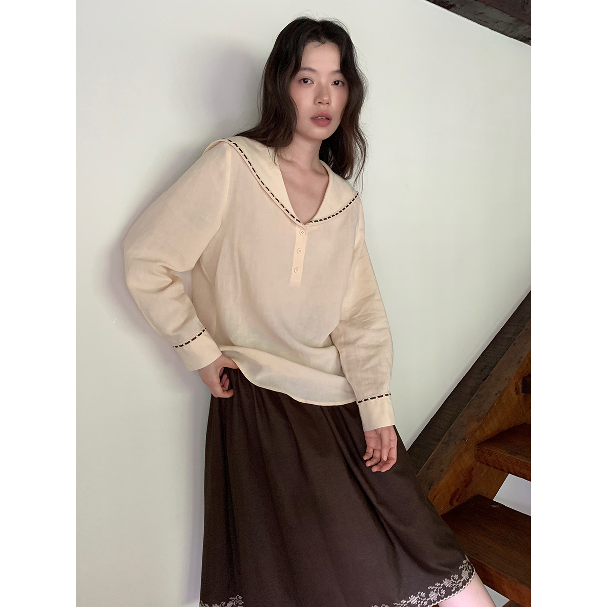 dorydory学院风海军领减龄长袖衬衫早秋宽松显瘦撞色设计感衬衣女