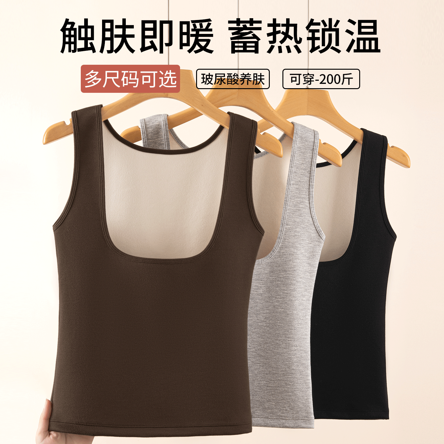 秋冬托胸款U型领口加绒加厚保暖背心女玻尿酸内衣无痕隐形打底衫
