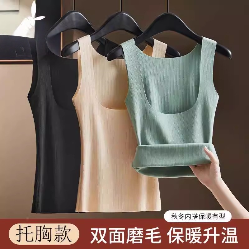 内衣保暖背心女2025新款托胸修身加绒发热马甲带胸垫一体免穿文胸