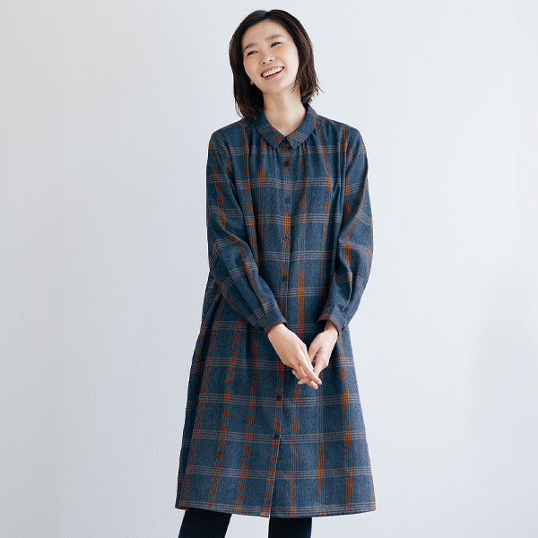 2025年秋季款日本代购复古大格子配色清爽衬衫式连衣裙 有大码