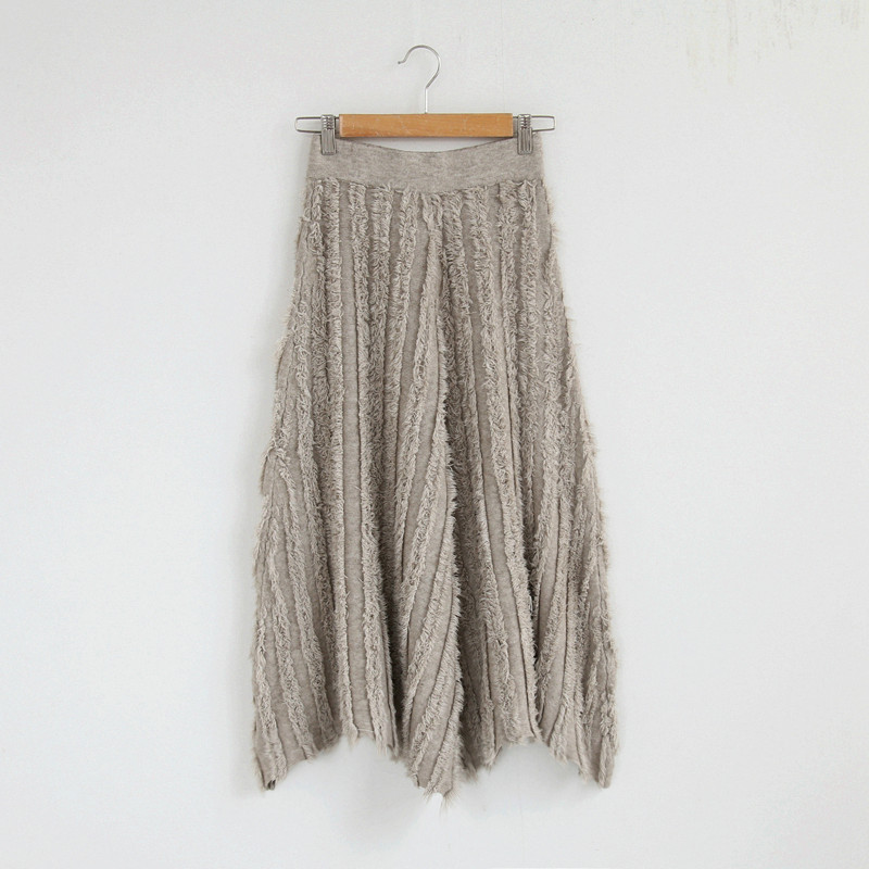 F2522 羊毛不规则毛边针织半身裙女秋冬中长款2025新款高腰a字裙
