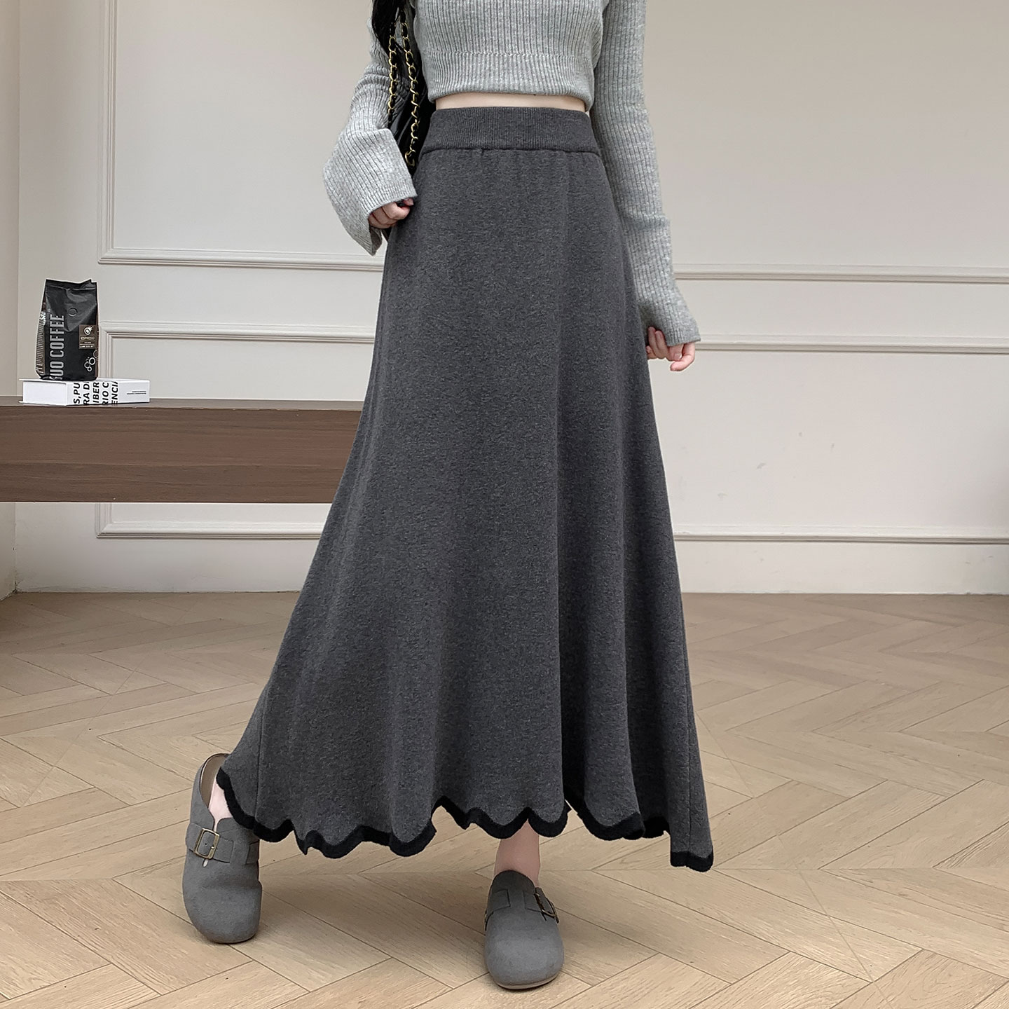 加厚毛线针织半身裙女冬季2024年中长款宽松不规则a字裙百搭长裙