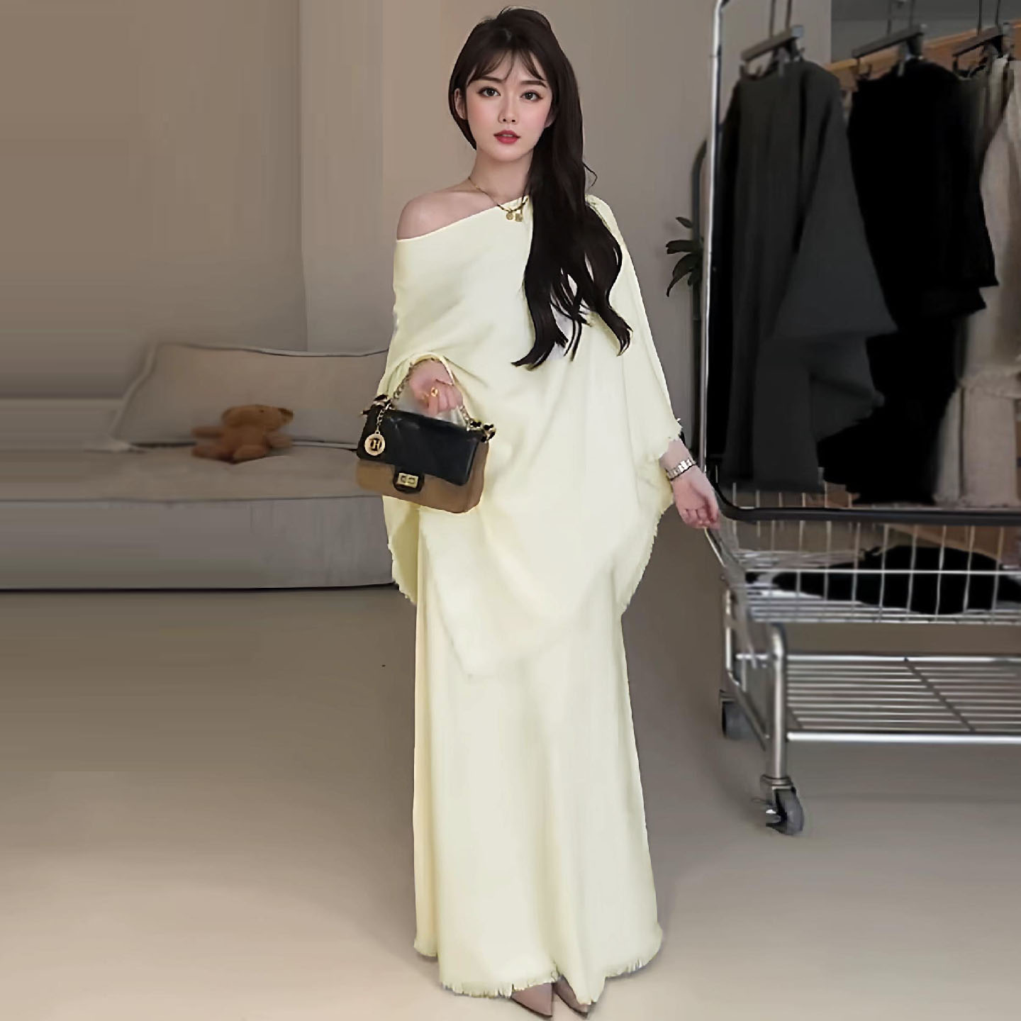 温柔甜美穿搭一整套设计感露肩不规则针织斗篷毛衣中长款半身裙女