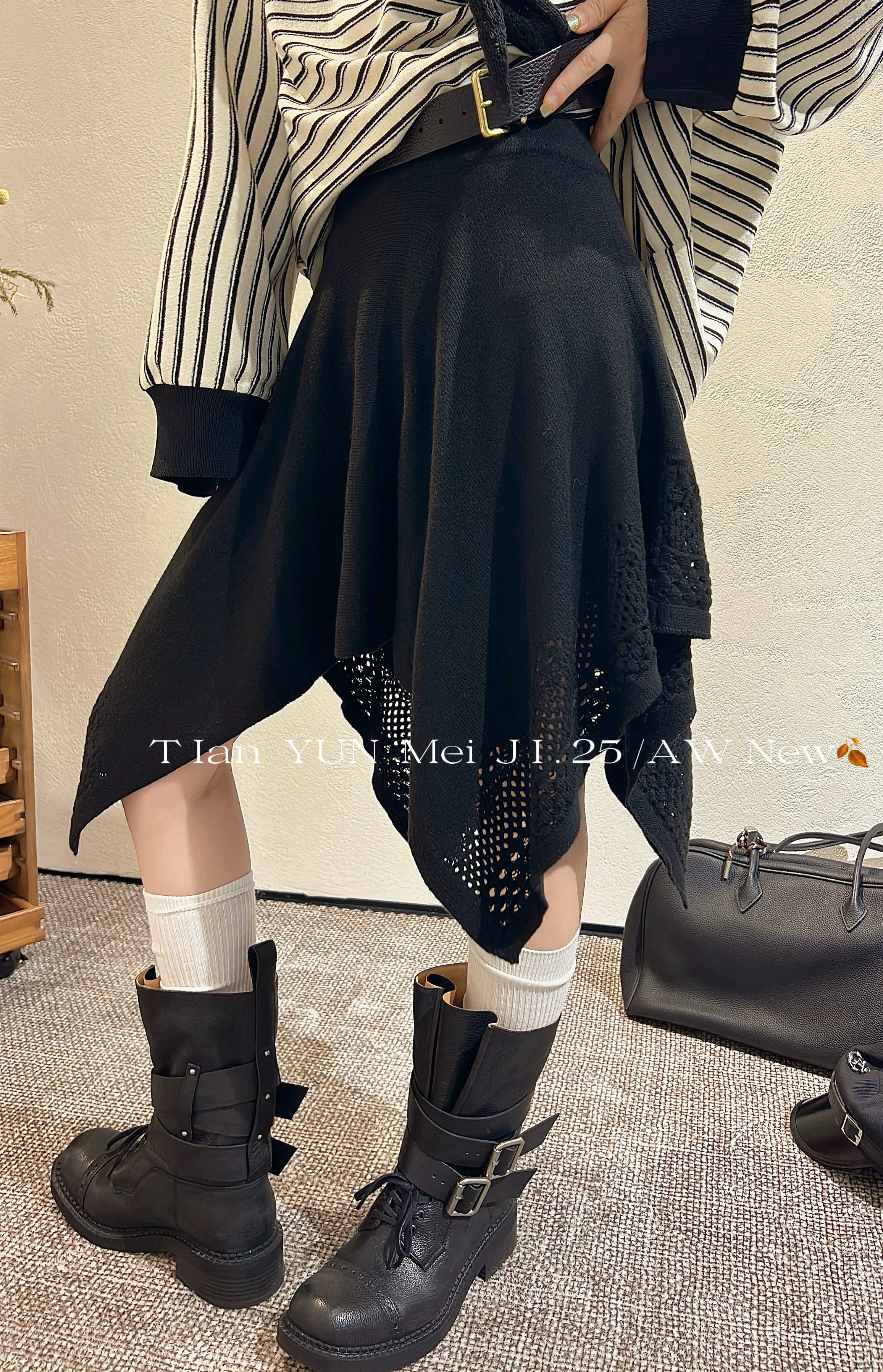 中和休闲针织半身裙女不规则2025秋季新款百搭显瘦中长款A字裙潮