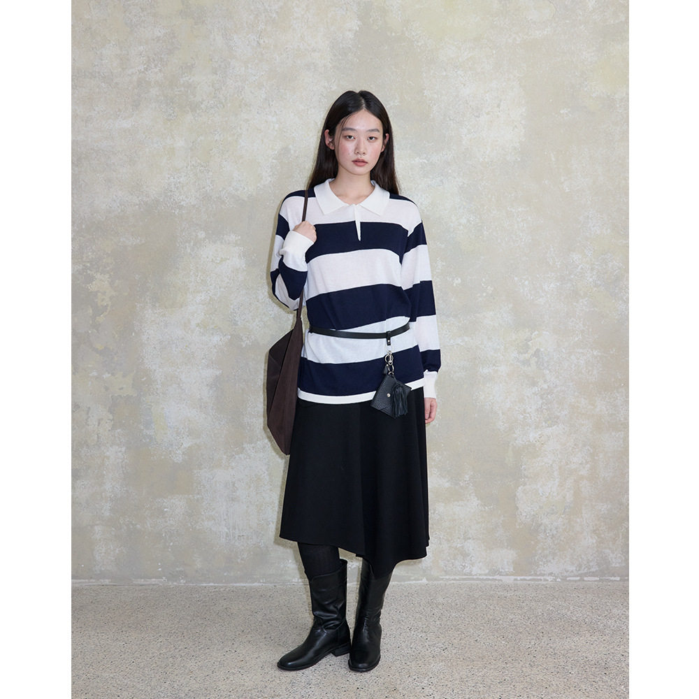 针织半身裙冬天配毛衣不规则裙子女秋冬中长款a字条纹拼接百褶裙