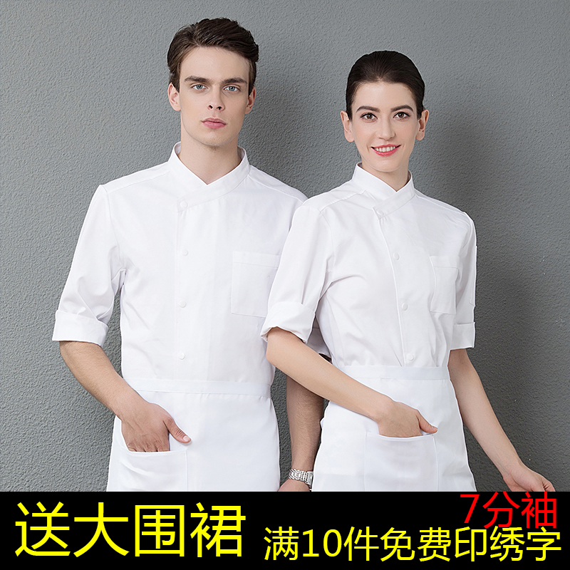 后厨师工作服装衣服七分袖半袖厨房工装烘焙蛋糕男女餐厅酒店食堂